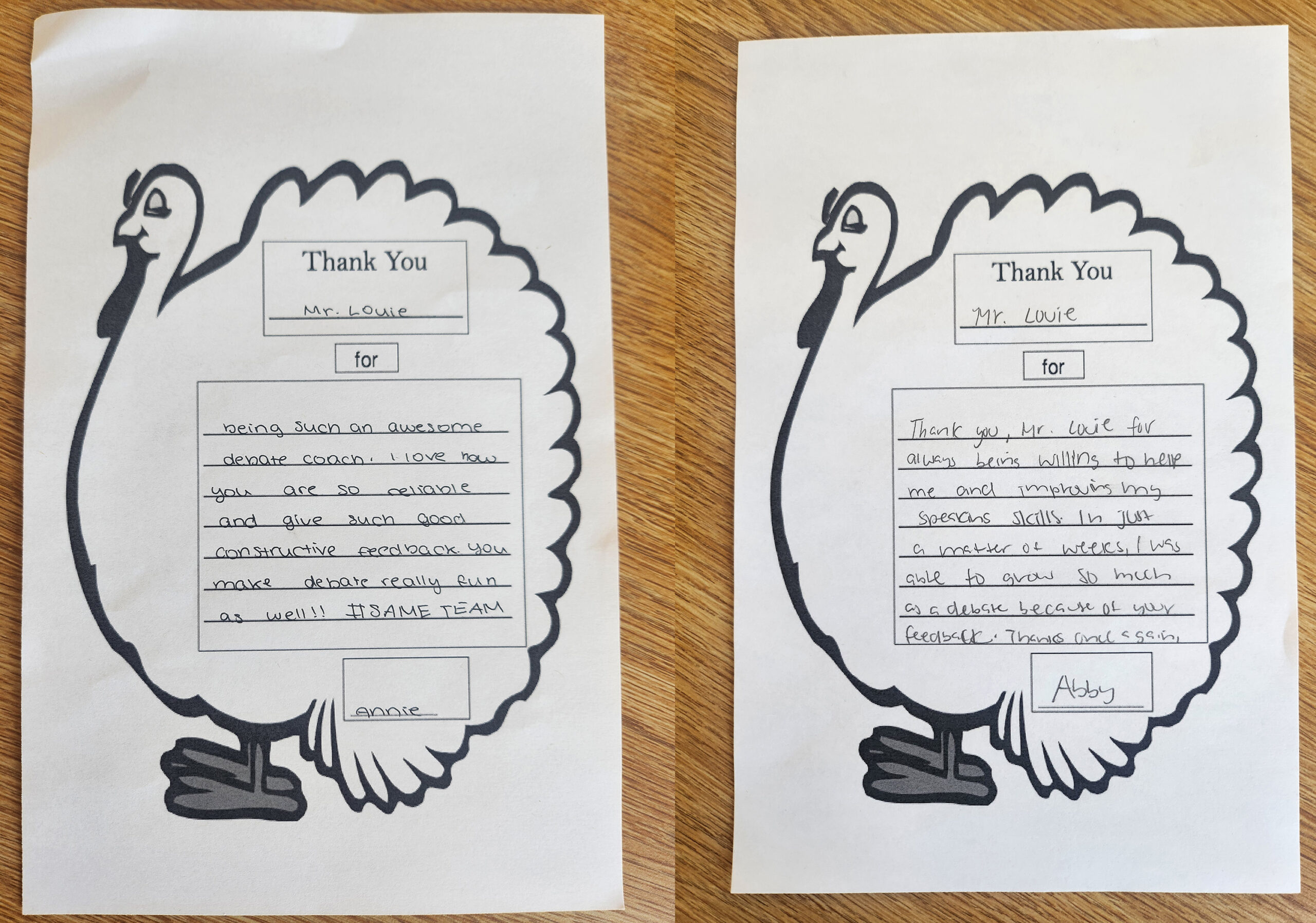 On Thursday, November 18th, I was sitting at my desk, staring at two letters shaped like turkeys. They’re a little crumpled now from being held in my hands (and later personally showing them to my wife and family). The handwriting is that distinct 7th-grade style—careful but not quite polished, enthusiastic in its use of exclamation points.